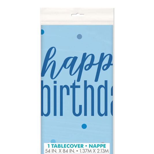Glitz Blue & Silver Happy Birthday Reusable Plastic Tablecover