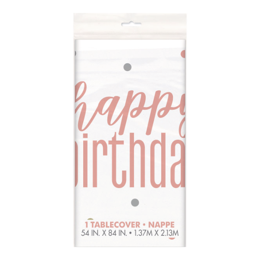 Glitz Rose Gold Happy Birthday Reusable Plastic Tablecover